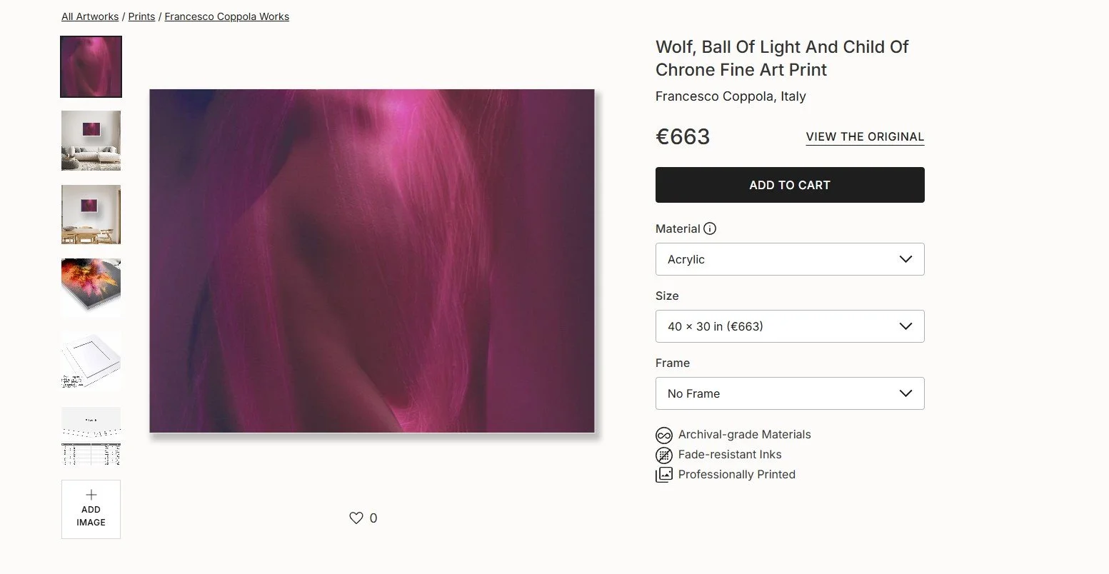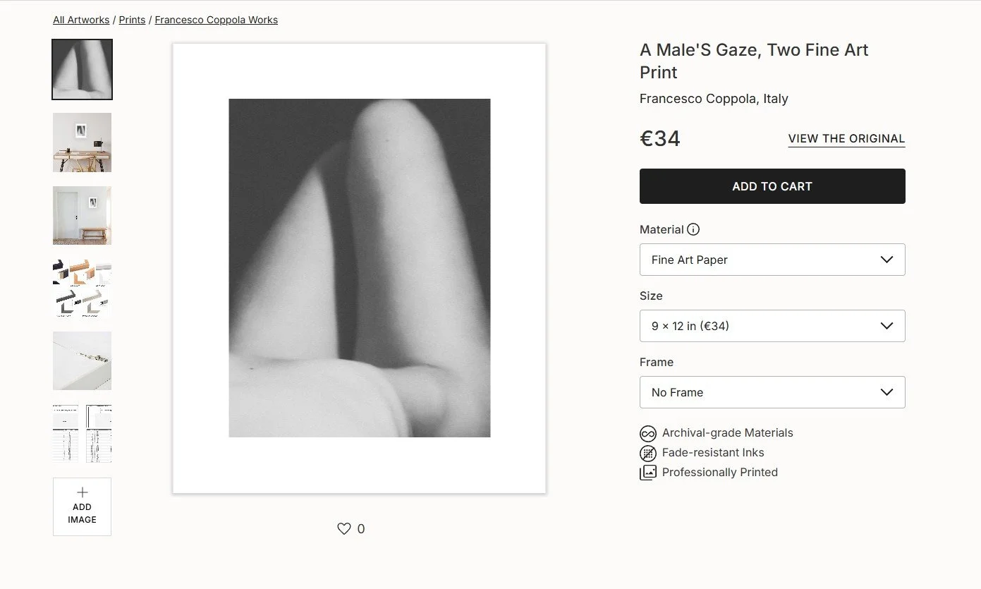 Each image can be printed in cheaper open editions, on photographic paper, canvas, acrylic or metal surfaces, where printing and delivery is handled by saatchiart itself.